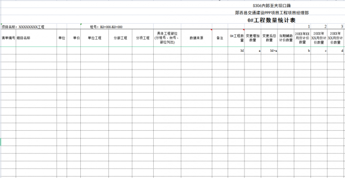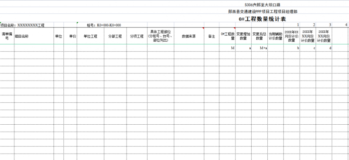 “0#”臺(tái)賬按單位、分部、分項(xiàng)工程劃分標(biāo)準(zhǔn)編制,可以將計(jì)量支付與質(zhì)量檢驗(yàn)評(píng)定有機(jī)結(jié)合起來,這樣可以使質(zhì)檢、測(cè)量、實(shí)驗(yàn)、計(jì)量等部門的內(nèi)業(yè)工作都在同一個(gè)規(guī)則下進(jìn)行,提高了整個(gè)項(xiàng)目(合同段)內(nèi)業(yè)管理的效率。